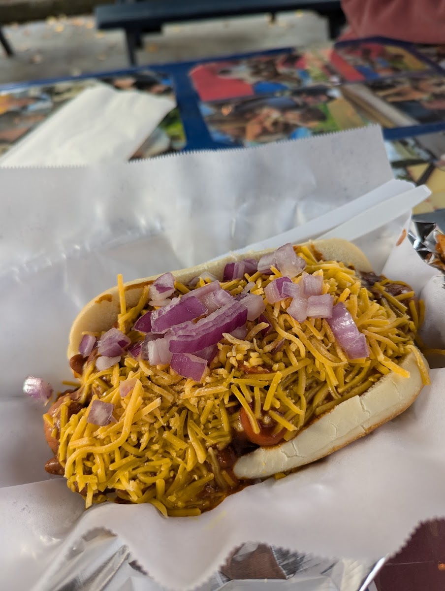 I haven't had a hot dog in years because I'm not really a fan but these are good. Large portions. The chili cheese fries we got is a small. Gluten free and vegetarian options. Quick service and hot made to order.