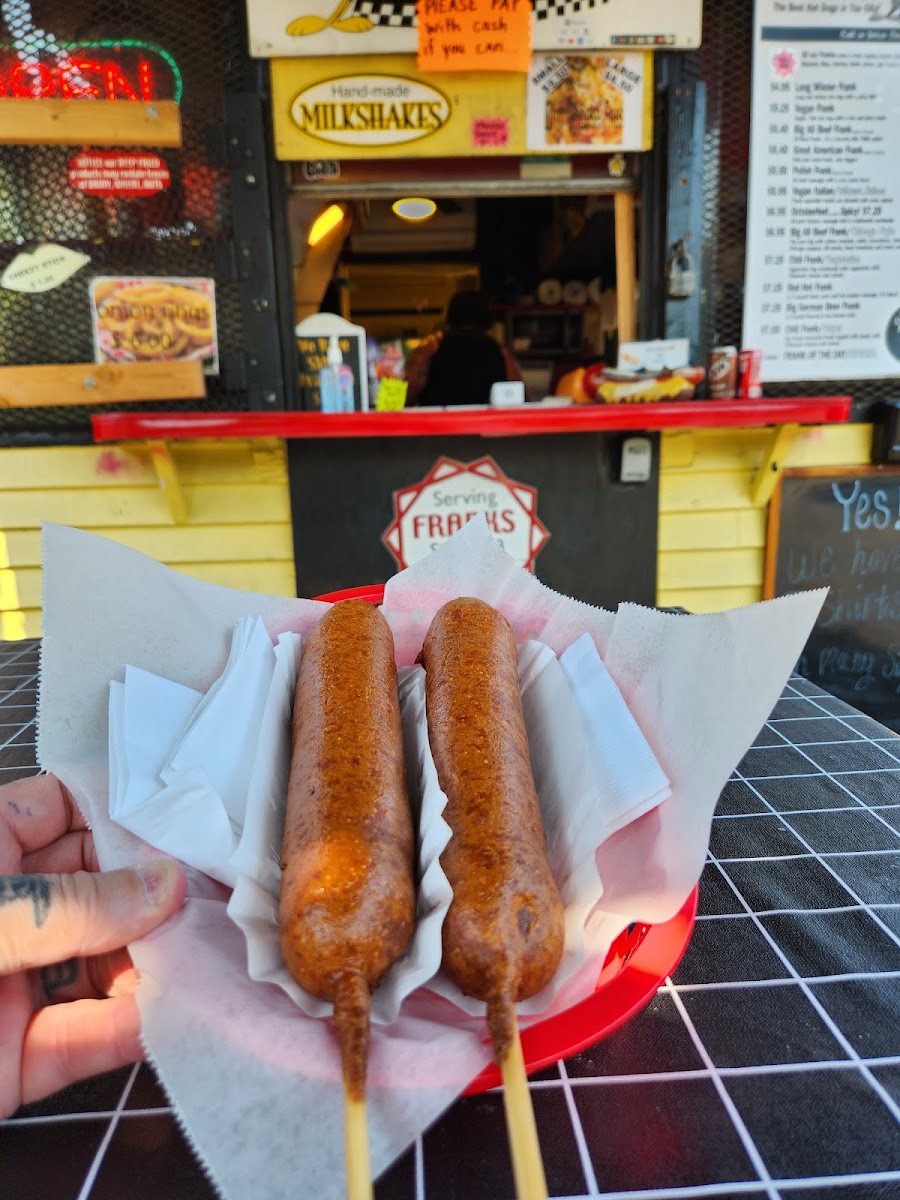 It’s clear too, from the diverse options and attention to detail, that Franks A Lot isn’t just catering to tradition but also to the city’s evolving tastes—offering gluten-free and plant-based alternatives with the same care as their classic franks. There’s an understated pride in that, a reflection of a spot that understands its role as a local fixture: a reliable source of comfort food, friendly faces, and a little bit of joy wrapped in a bun.