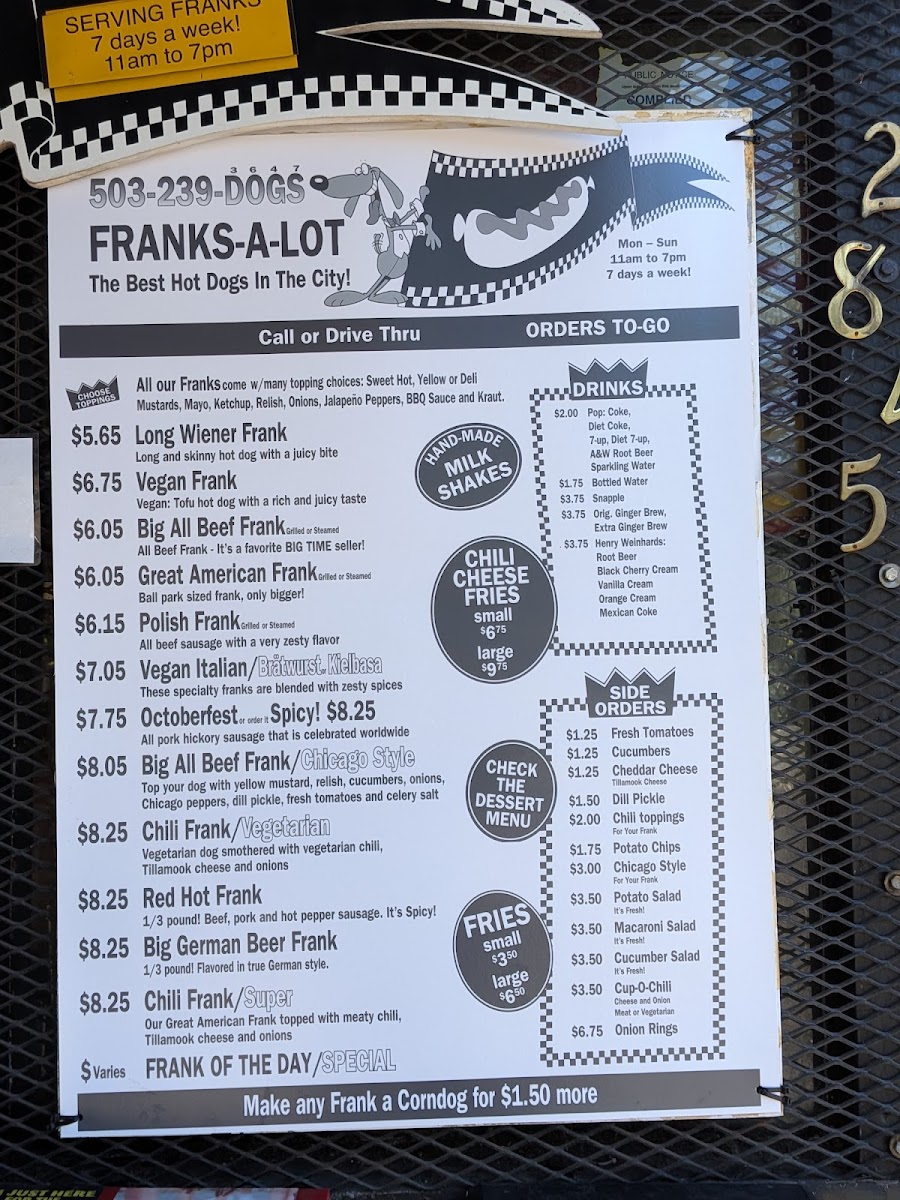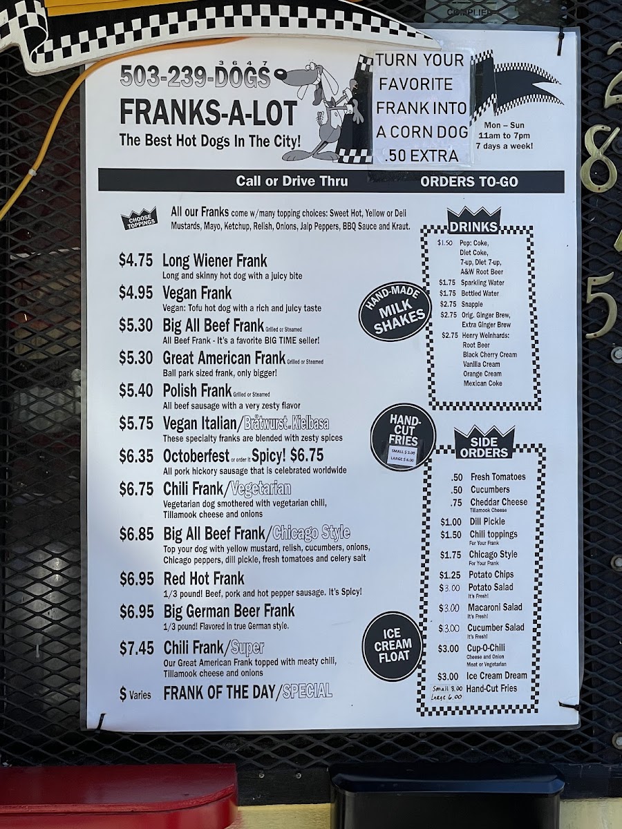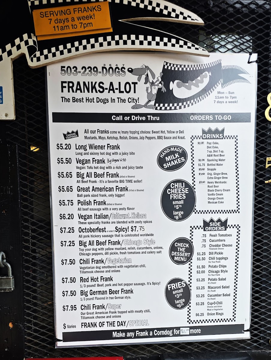 Franks A Lot offers a straightforward, casual menu focused on classic and comforting hot dog creations, with a friendly nod to both traditional and plant-based preferences. Here you’ll find a variety of all-beef and vegan dogs, alongside sides like fresh cut fries, onion rings, and potato salad—perfect for those moments when you want a satisfying, no-fuss bite.